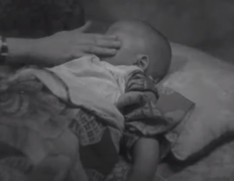 2. Elle essuie une larme d'elle perdue sur la joue du bébé.