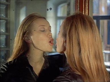 Le sang perlant à ses lèvres reflété dans un miroir ovale - en forme d'œuf - , désigne le frère utérin qui aurait pu mourir à la place du fœtus. Mais l'identifie aussi à la femme en détresse par le relais imaginaire de la jeune fille à la lèvre fendue : le miroir est bien la voie de passage analogique transgressant l'ordre spatio-temporel. C'est sa sensibilité érotique propre qui lui dévoile le drame de sa mère. La rousse est évoquée indirectement par un insert d'une façon qui ne laisse aucun doute : gros plan des lèvres en sang d'Aliocha. L'accompagnement musical reprend le motif de Purcell(22) entendu à la séquence en paysage neigeux de la jeune fille au sang tenant à la main une sacoche comme le médecin "fou".