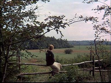 From this metaphoric vegetal clump an enigmatic character emerges who in certain ways is similar to Dionysus. He richly personifies the desire that Marusya suppresses inside herself but which fulfills itself fictitiously when, the fence giving out under their weight, they fall to the ground together. A latent thematic on illegitimate procreation ensues generating a sequence on the abortion that seems to culminate in Marusya's suffering. In any case, her sexual desire appears indissociable from procreation. The fence sagging under her suggests the imaginary pregnancy, agreeing with the erotic quest that signals the change of the seating position towards the exterior. But the danger is double, because to the fatal illegitimacy - Marusya will not renounce her husband - is added the risk of irradiation of the fetus which signals a series of variations of fire image through the translucent chair. The departure of the imaginary Dionysian lover will be linked elsewhere to a powerful borean gust that seems to emanate from this grove.