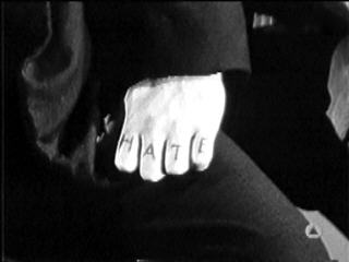 ![]() Sur la main droite : love, sur la gauche : hate, mot qui s'adresse en fait surtout aux femmes |
